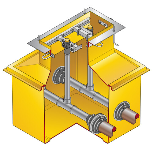 682mm x 682mm x 825mm (27″ x 27″ x 32″) deep dispenser sump and corbel to fit Gilbarco Electroline 1 , 2 & 4 hose models. Includes dispenser support rails and shear valve/pipework support rails.